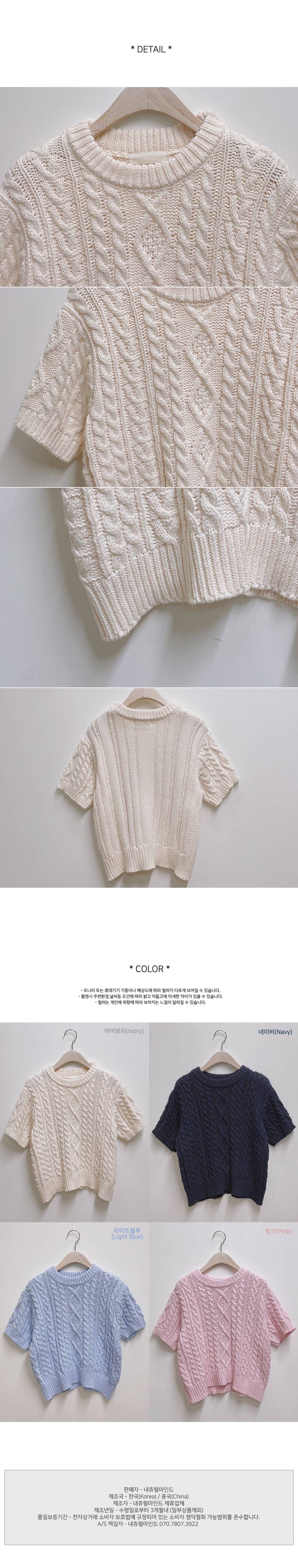 SIZE: 어깨:44 가슴:48 소매:18 암홀:20 소매단면:18 총기장:47 (단위cm)