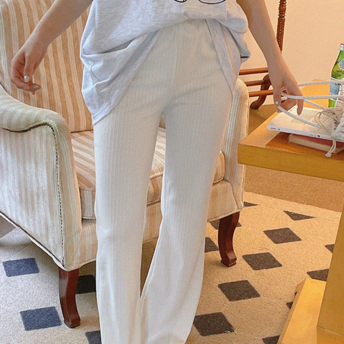 - 잔잔한 골지원단에 허리부분 밴딩처리된 부츠컷 팬츠입니다.
