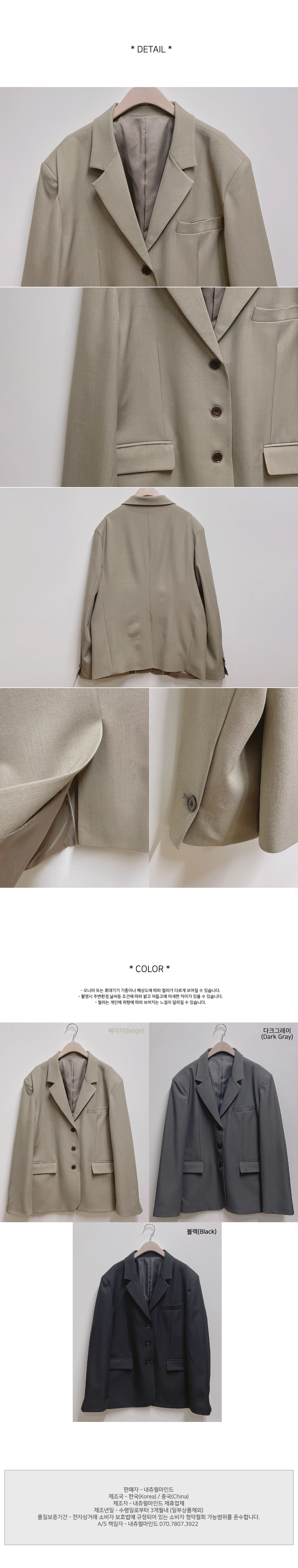 - 오버+보이핏으로 트랜드한 무드에 자켓입니다.